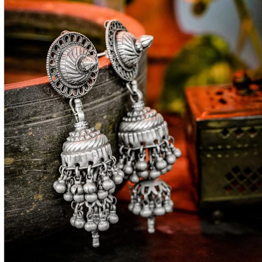 EXQUISITE ECHOES: Tribal Silver Jhumka Earrings for Bold Style - CER 1011