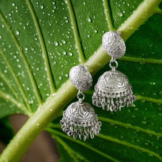 EXQUISITE ECHOES: Tribal Silver Jhumka Earrings for Bold Style - CER 1008